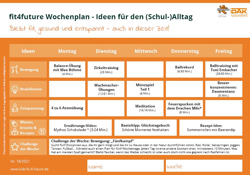 Fit4Future Wochenplan – Ideen für den (Schul-)Alltag